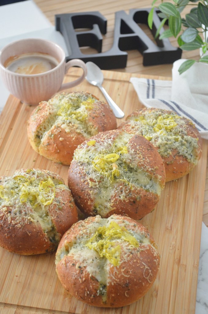 Do not leave the buns un-attended as it could brown easily with the garlic butter coating it. Bake the buns at a medium temperature until they’re golden brown. The cheese should melt perfectly, creating a gooey and crispy topping. I find that 13 – 15 minutes is a good time. Check at 13 minutes and see how it is browning.