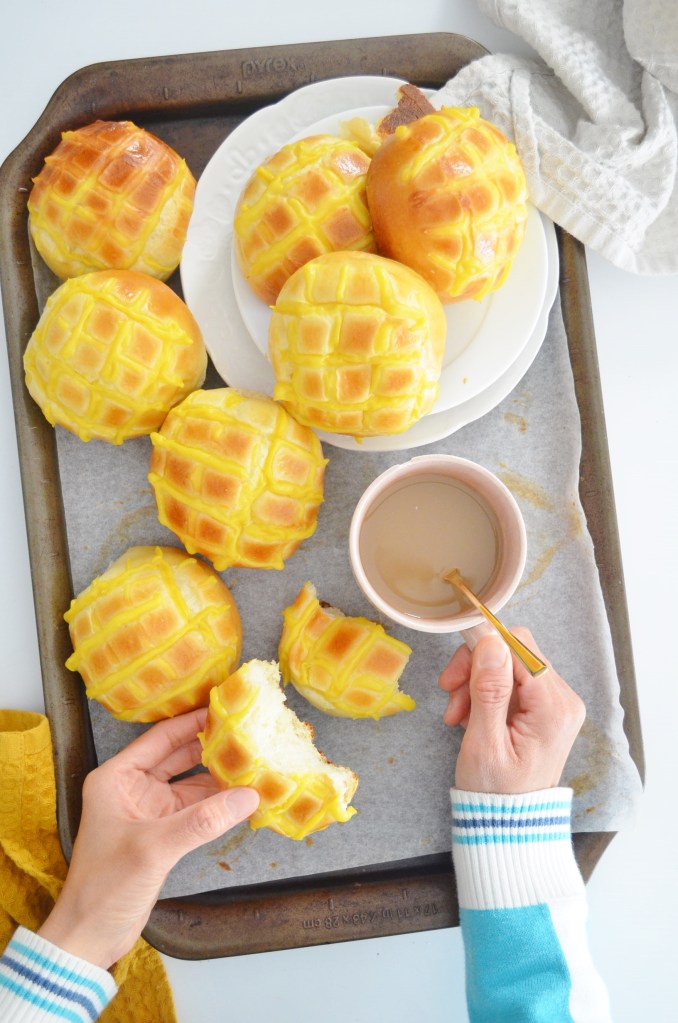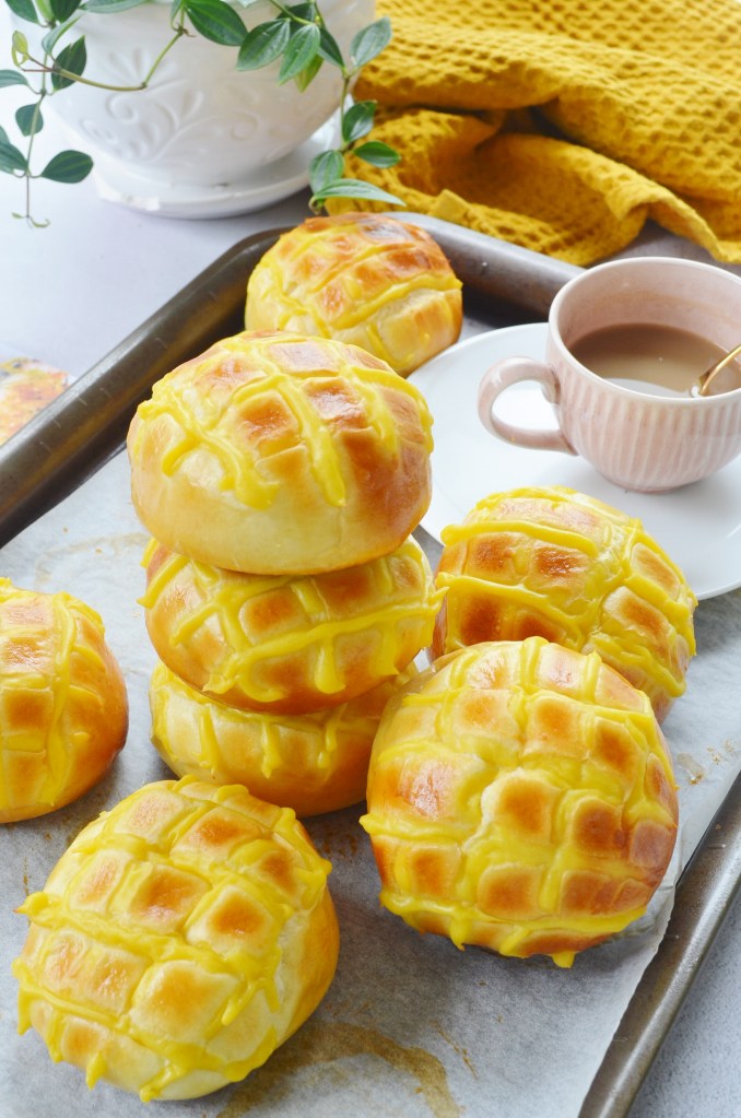 What truly sets these bread buns apart is the custard paste piped on top in a criss-cross pattern. Doesn’t it look beautiful? You can make it without it, but if you want something that is delicious and physically impressive, you have to put a bit extra effort. Just tad bit to elevate these buns. This light, creamy mixture creates a subtle sweetness and a beautifully golden, textured finish. The contrast between the soft potato-infused bun and the delicate custard makes for an unforgettable bite! Love it 🙂