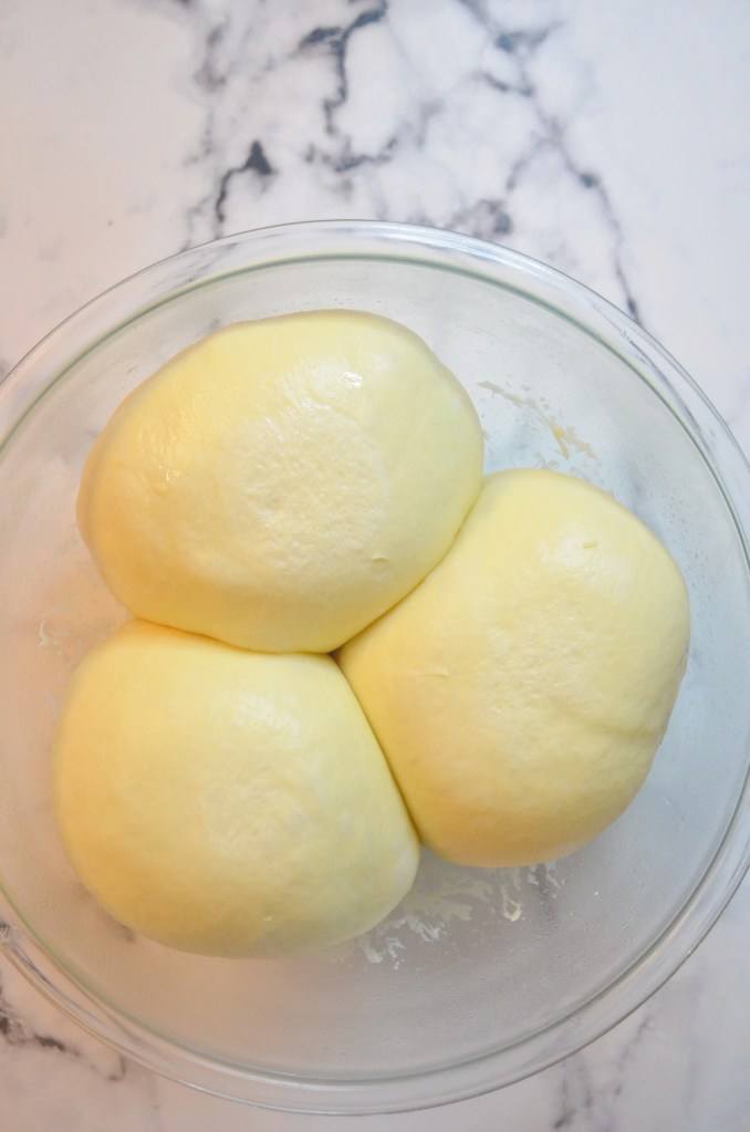 This bread dough can be made a day ahead. This will make the entire process easier in terms of time allocation. I made the dough a day ahead and store it in a greased bowl covered with a tight lid. Depending on how you intend to use the bread, you can keep it whole or divide it to portions you like. I divided the dough into 3 portions after the first rise. The cold temperature of the refrigerator will slow down the yeast from activating and prooffing the bread. Once you are ready to use, pre-heat the oven to 110F then turn it off as soon as it reaches the 110F. Leave the dough inside until warm enough to work with.