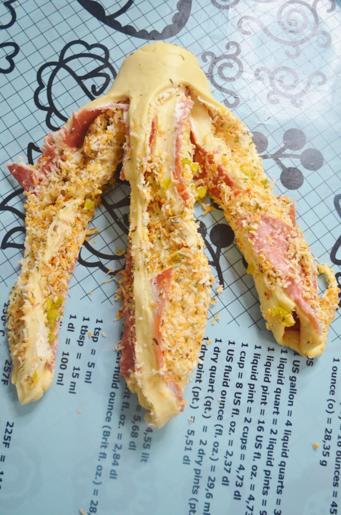 When I mde this, I just finished making 2 boxes of charcuterie box. I have plenty of Italian cold cuts lefover and I was wondering where to use it. Luckily, I was meeting friends for a get together and I was thinking of what to gift them. They happen to like this kind of stuff which was perfect. I already knew I wanted to make a loaf bread with Jalapeno and Cheese as base ingredients. So for all these 3 variations (maybe 2 of you consider the main ingredients), the base filling will be the same, with tjust the addition of Italian cold cuts for one of the loaf. I made 2 of the loaves Babka style.