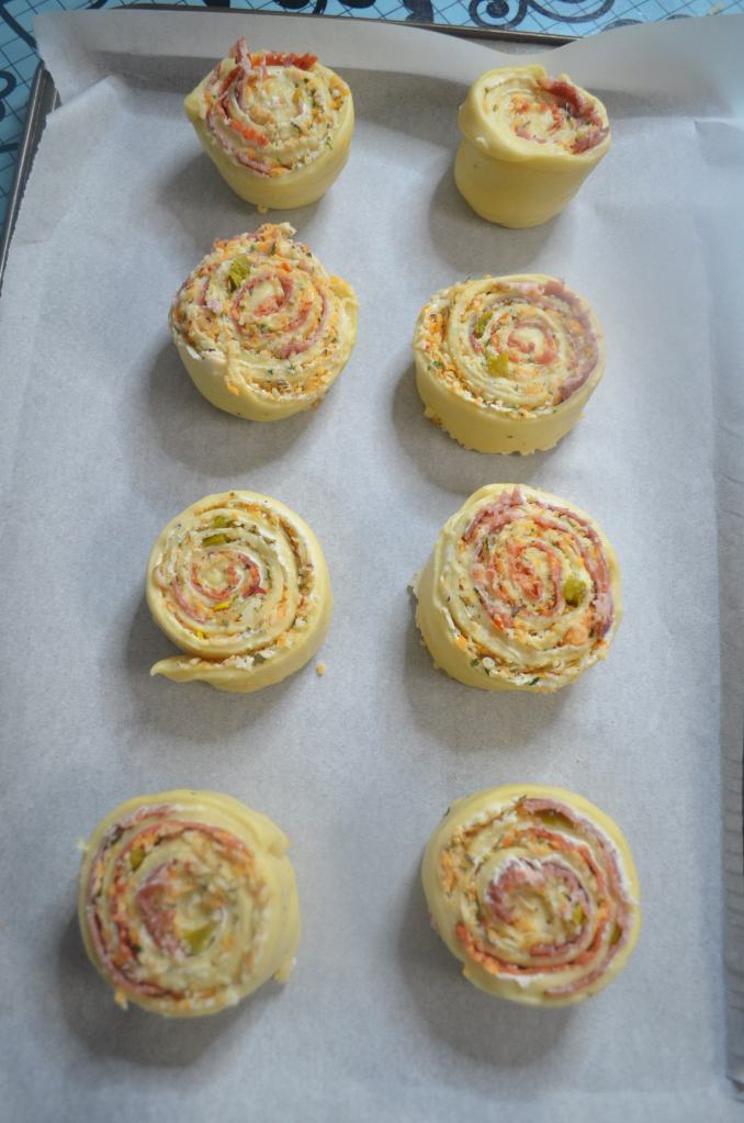 The log should be about 8-inch long. This will make a decent size of 8 pieces. There are ways on how you can portion the bread into 8 but so far the cleanest way I had tried was to use a dental floss with teh help of a scissor to cut any excess part of the cold cuts.