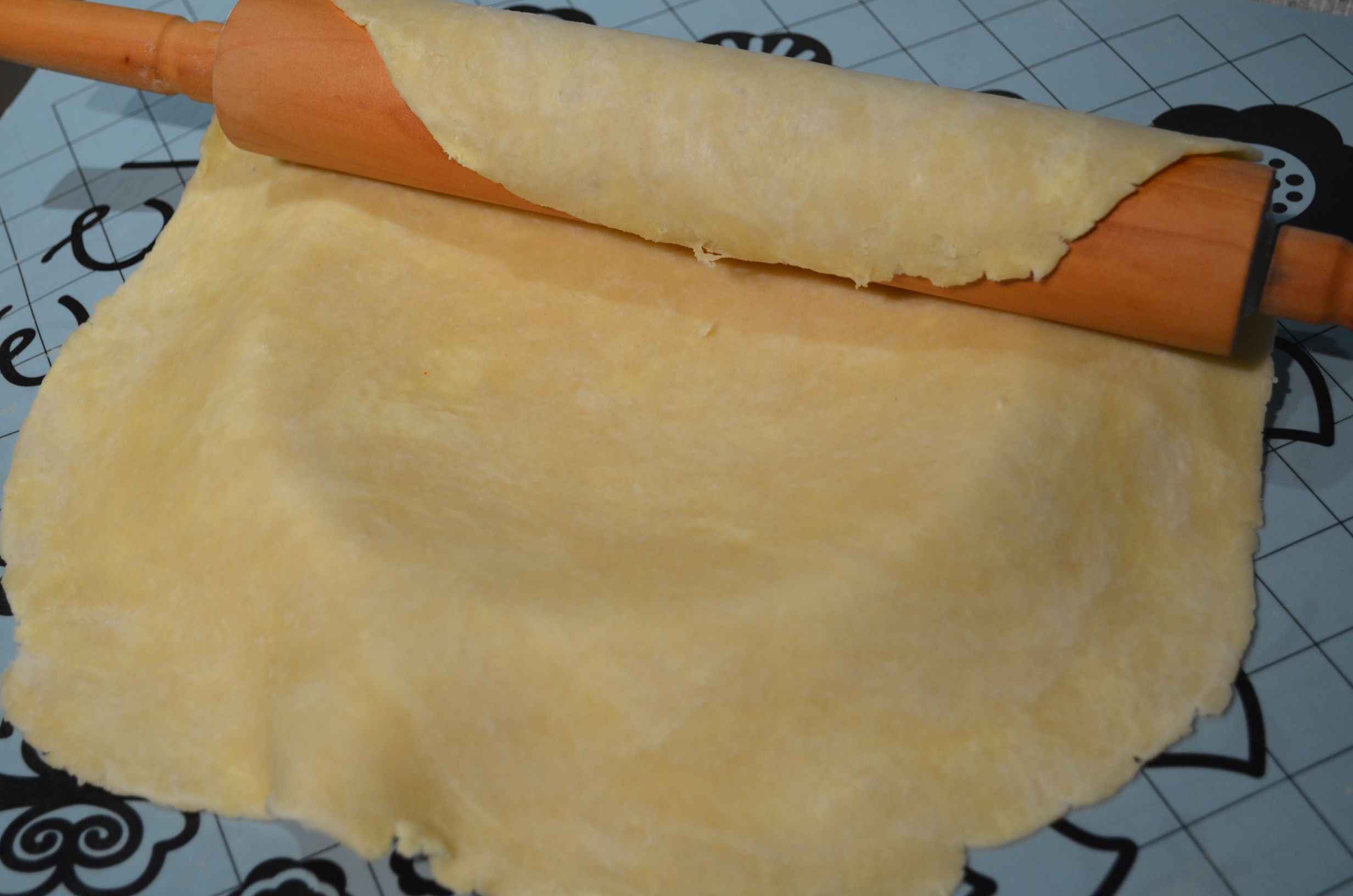 After chilling the dough, roll in floured surface and transfer in a pie pan